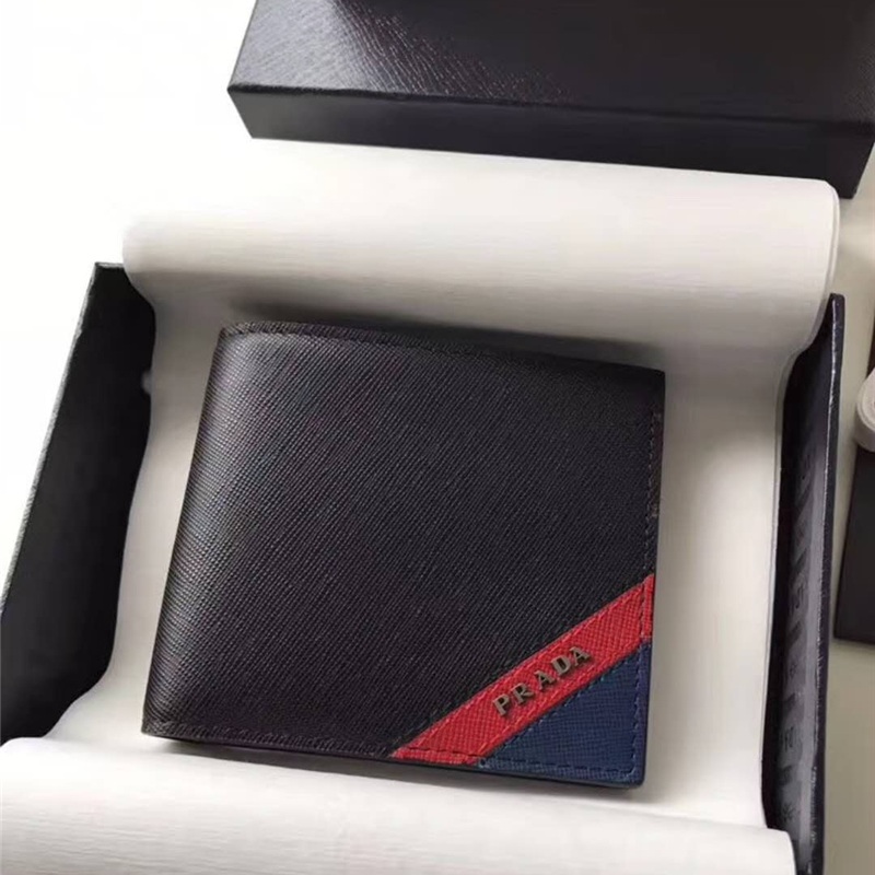 當前位置: 首頁>Prada|普拉達>Prada錢包> 2MO513 Prada普拉達 Saffiano皮革 嵌花裝飾 三色拼 雙折短 黑拼紅拼藍