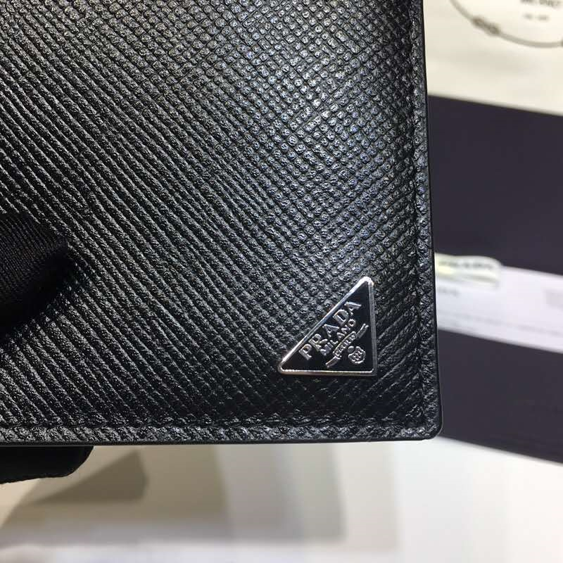 Prada普拉達(dá) Saffiano粗紋牛皮 Prada長(zhǎng)款雙折錢夾 黑色