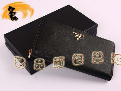 • M506A Prada錢包 普拉達男士牛皮金色拉鏈長錢夾 Prada長款錢包 Prada錢夾 黑色