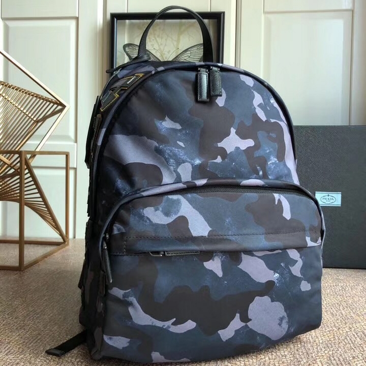 2VG066 Prada背包 迷彩印花 織物面料 普拉達雙肩包 藍色