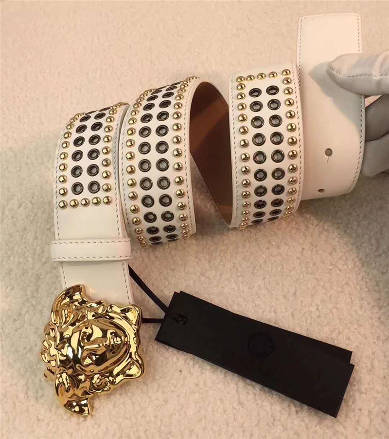 • 范思哲Versce 2017新款皮帶 美杜莎扣頭皮帶 男士腰帶牛皮 白色金扣