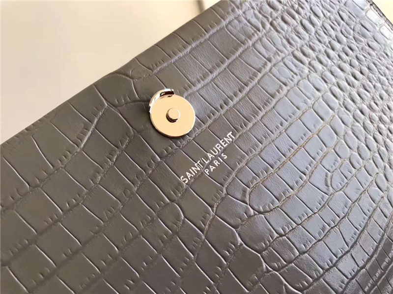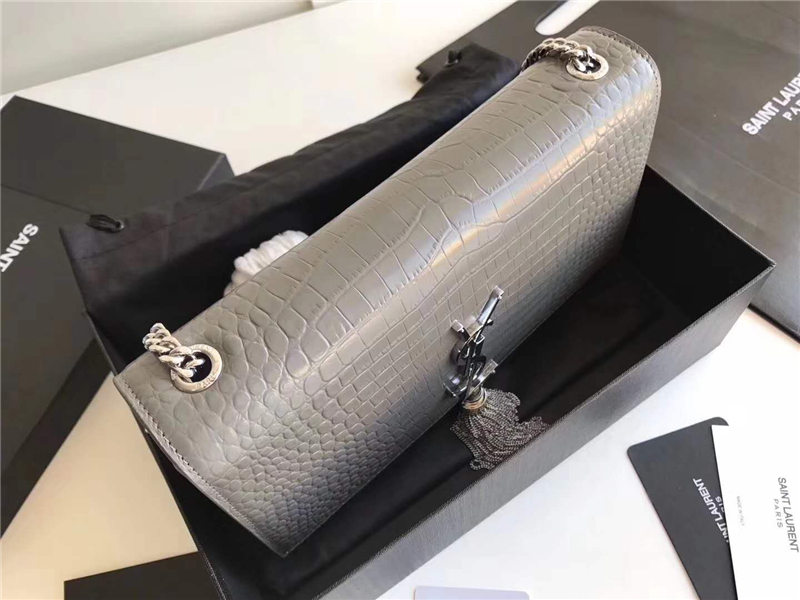 326076 YSL圣羅蘭 專柜最新 細鱷魚紋 流蘇包 淺灰銀鏈