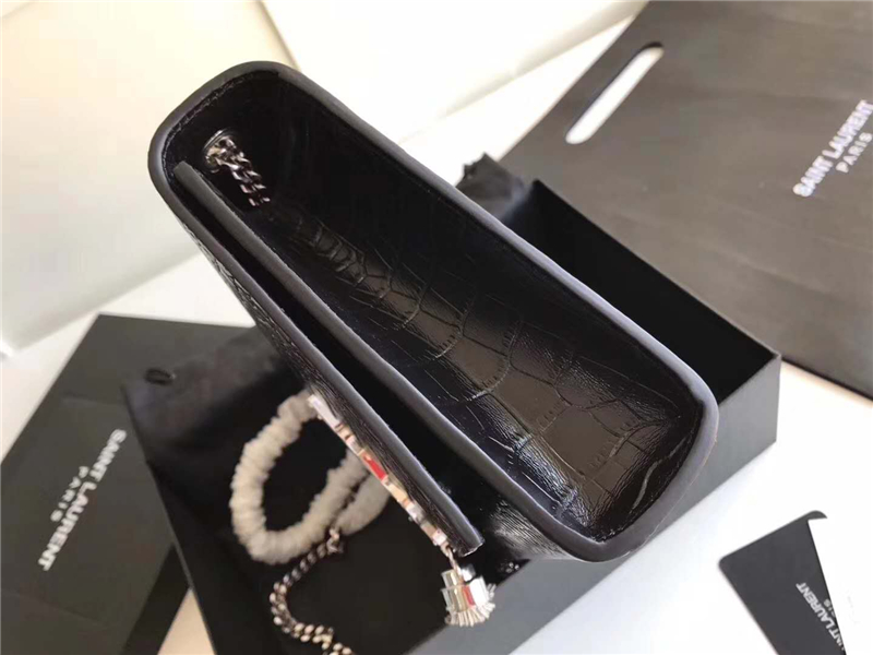 326076 YSL圣羅蘭 專柜最新 細鱷魚紋 流蘇包 黑色銀鏈