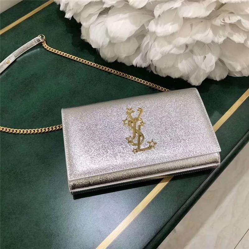 YSL圣羅蘭 最新材質(zhì) 鉆石紋 金屬皮 星扣 鏈條包 銀色