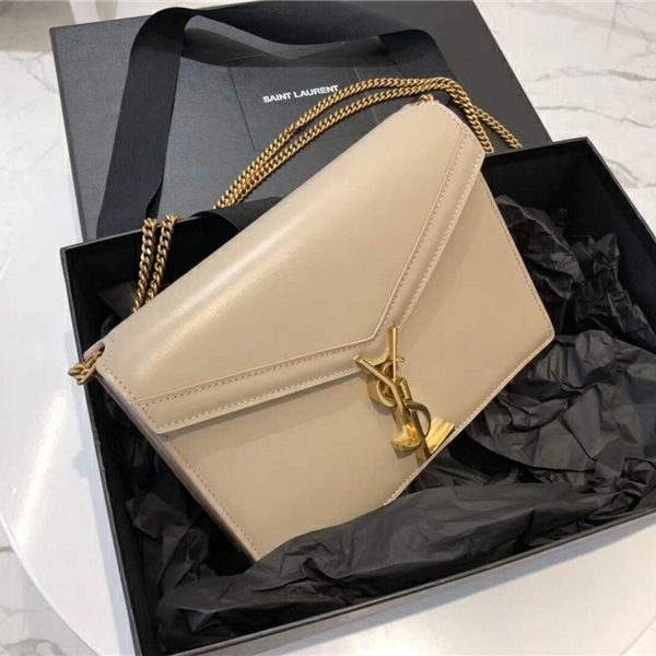 532750 YSL女袋 CASSANDRA 中號 字母標志 拉頭光面 圣羅蘭信封皮包 白色