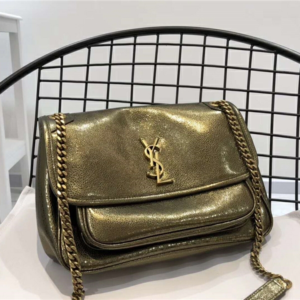 • YSL女包 NIKI系列 真皮鯊格紋 中號 圣羅蘭翻蓋包 YSL鏈條肩包 青銅金