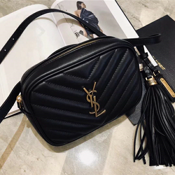 • 534817 YSL女包 LOU系列 絎縫真皮 圣羅蘭流蘇腰包 黑色