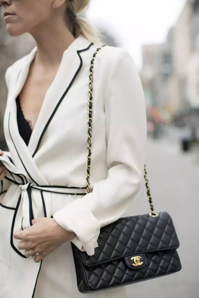小巧的包身很適合手拎,黑白的配色搭配起衣服來也很容易: