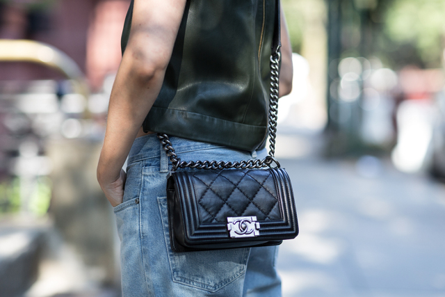 但是看街拍的時候,我覺的這只包的背法應該不止七種,買一只Gabrielle大概會有買了N只包的錯覺吧~大多數的時髦人都喜歡V字型的背法,秀場上的模特們也大都是這種背法: