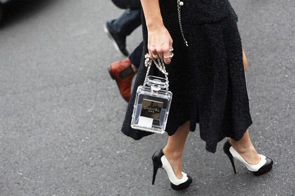,介紹了這么多實(shí)用型款式,也要說(shuō)說(shuō)它的驚艷之作,比如這個(gè)香水瓶絕對(duì)令人眼前一亮。在 Karl Lagerfeld的創(chuàng)意領(lǐng)導(dǎo)下,每次 Chanel天橋都會(huì)出現(xiàn)不少驚喜,2013年這個(gè)玻璃香水瓶clutch就是其中之一它以經(jīng)典的Chanel No5香水瓶為藍(lán)本,成為了當(dāng)年潮人人手拿一個(gè)的潮流款式。