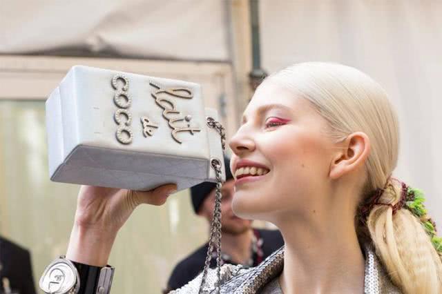 將最平凡的超市搬到奢華天橋上也是 Karl Lagerfeld的驚人舉動(dòng)。2014年的秋冬秀上,大家都被這牛奶盒手袋逗樂(lè)了,光滑的銀色皮革和珍珠裝飾,應(yīng)該是最世界都想要的牛奶盒。