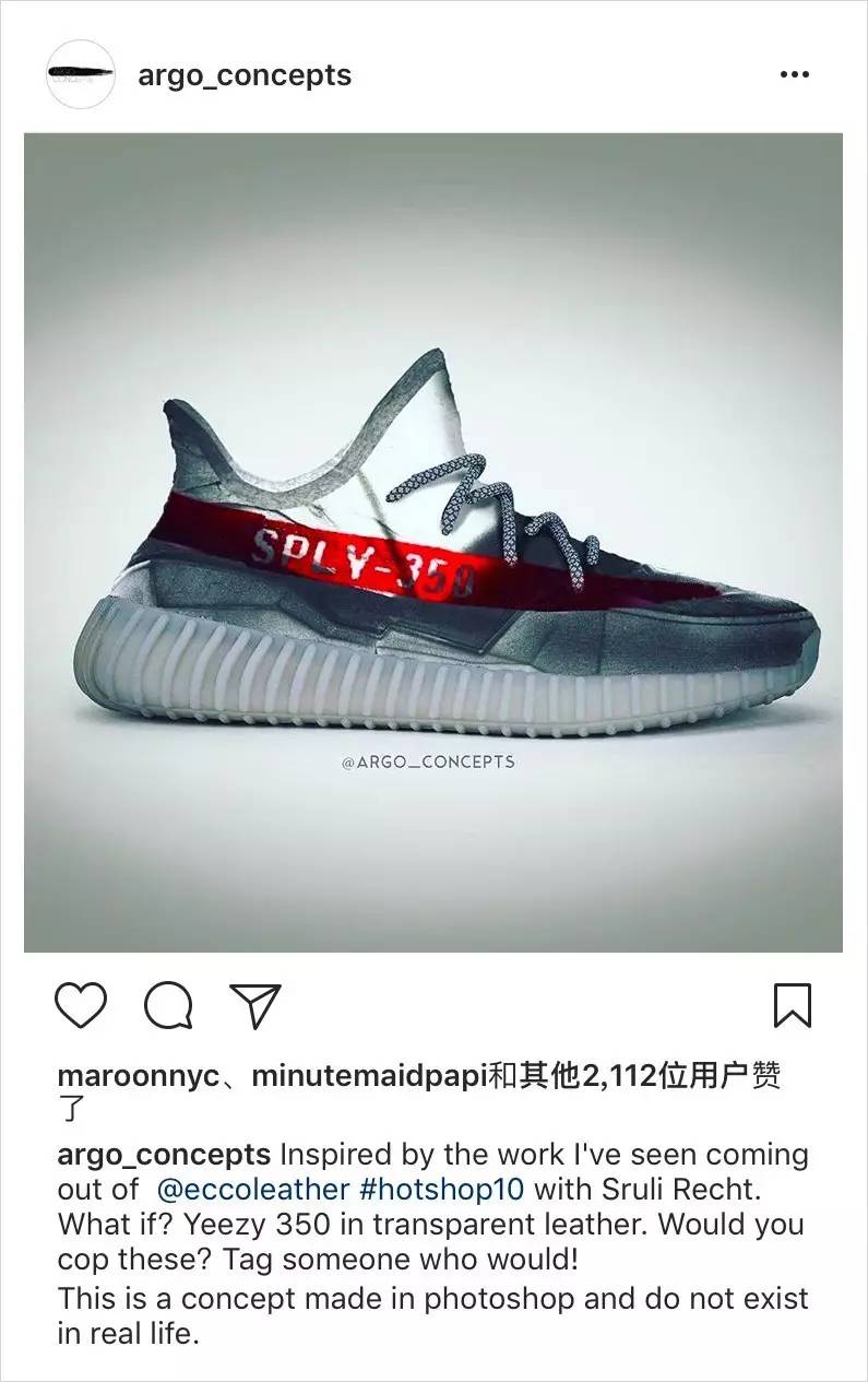 盡管這樣的顛覆性設計可能永遠不會成為現實,但過過眼癮還是很有必要的。最近,悉尼設計單位 ARGO CONCEPTS 受到冰島設計師 Sruli Recht 的靈感啟發,為我們帶來了一款新穎的 Yeezy Boost 350 V2 設計。其將原本的 Primeknit 替換成透明材質,再通過鞋側的紅色 “SPLY-350” 條紋進行點綴,呈現出與原作完全不同的前衛風格。如果成為現實,你想好用什么襪子來搭配它了嗎?