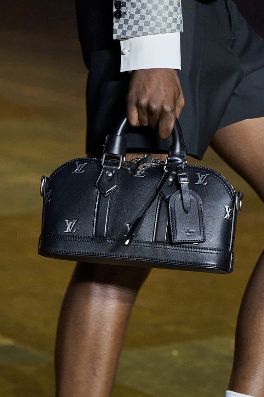包袋作品中亦融入諸多與巴黎和弗吉尼亞州有關(guān)的設(shè)計(jì)元素——Monogram 船形手袋致敬從新橋啟航的 Bateaux Mouches 游輪;Alma 手袋上印有美國雅達(dá)利游戲藝術(shù)家創(chuàng)作的8位元像素畫,描摹出巴黎新橋街景;Black Tie 手袋以 Damier 棋盤格為背景,鋪繡大小錯(cuò)落的珍珠和水晶;取材柔軟皮革的超大號(hào)托特包上飾有貼花字母圖案,模擬品牌標(biāo)志性購物袋質(zhì)感;籃球手提包的靈感則源自于 Pharrell Williams 在弗吉尼亞海灘安妮公主高中求學(xué)期間的回憶。
