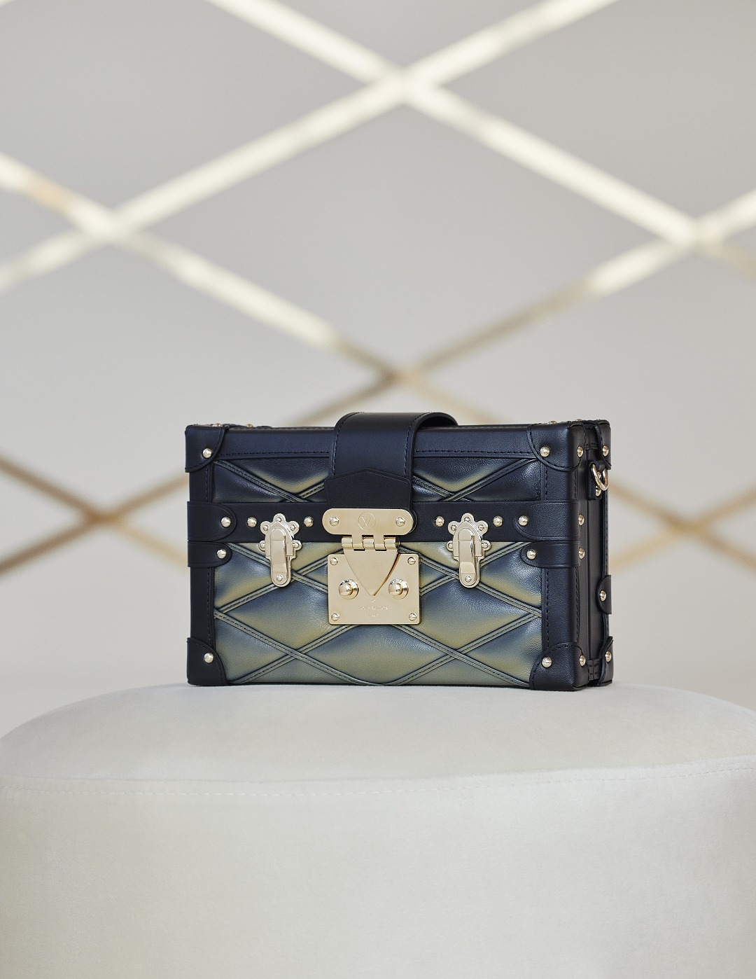 Petite Valise 手提箱、Petite Malle 小硬盒和 Vanity Case 迷你硬盒包同樣換上 Malletage 絎縫菱格外觀,搭配金屬包角、鎖扣等五金件,以當代視角重新詮釋復古硬箱元素,噴繪陰影效果釋放華貴氣韻。