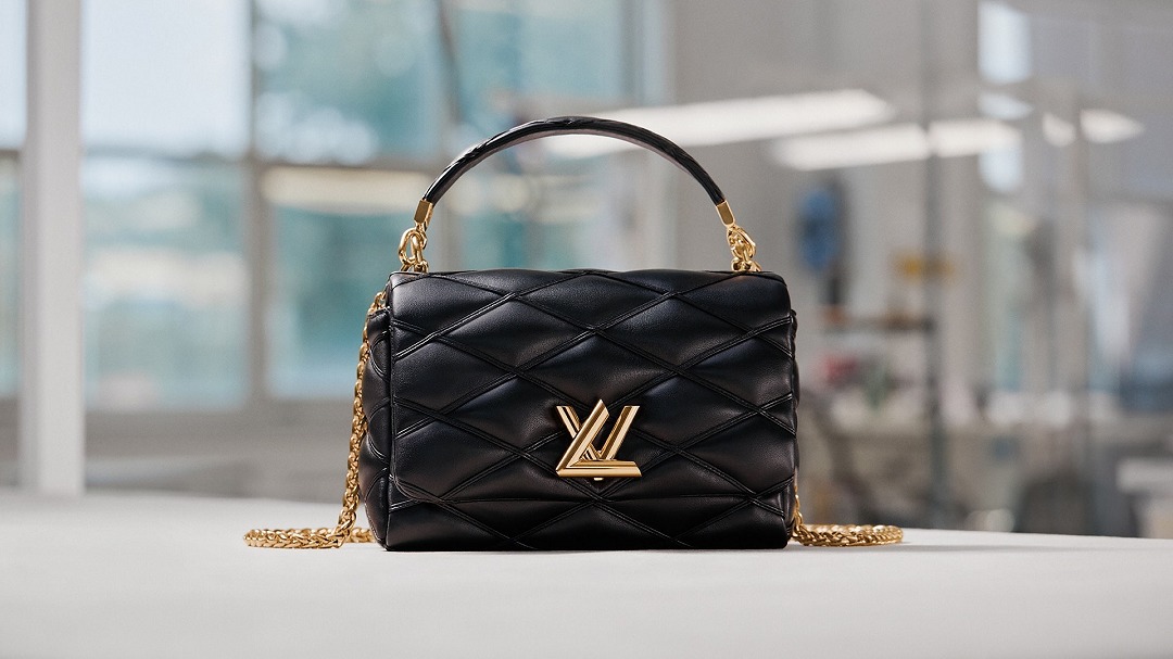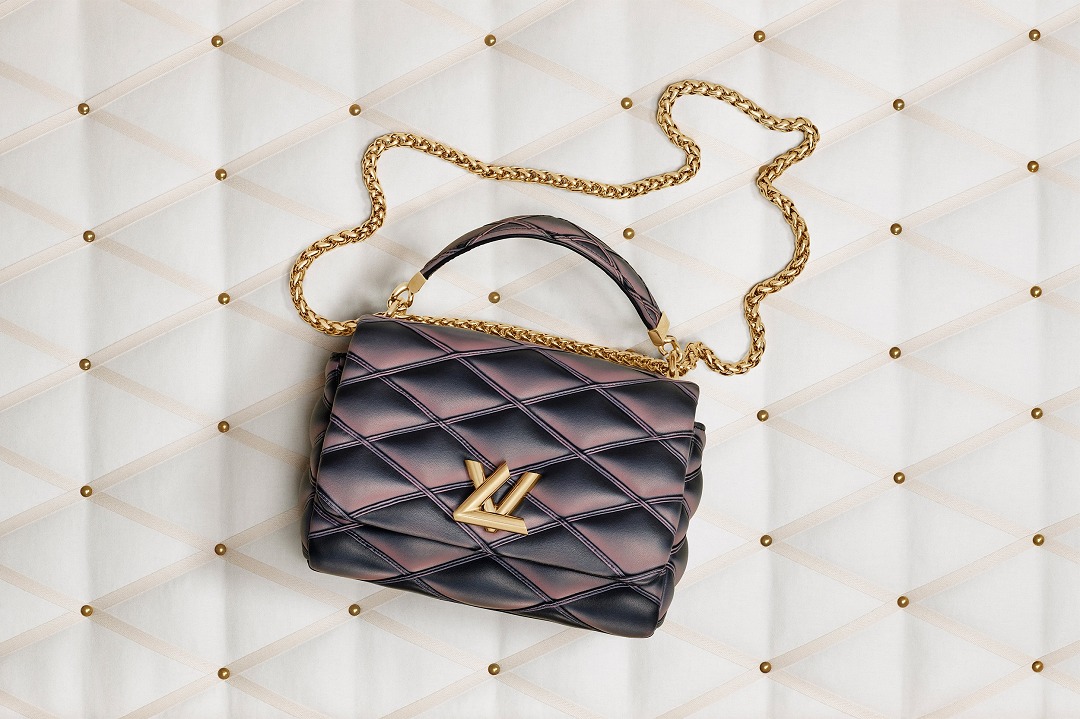 金色 Twist 扭鎖呼應路易威登首字母,烘托 GO-14 手袋的經典弧形輪廓,靈感源自1988年發布的 Trapèze 手拿包,為包包注入雕塑美感。