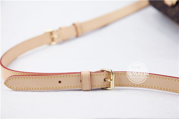 包帶可以任意拆卸和調節長短,包帶上的金屬扣也刻有Louis Vuitton燙金字樣。