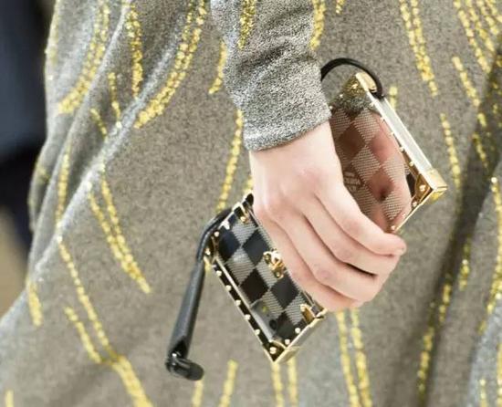 在大秀開始前,LV的創意總監Nicolas Ghesquière早就迫不及待地在個人的ins上提前公布了這一單品。圖中的手機殼Monogram花紋,外形像小箱子Petite Malle。