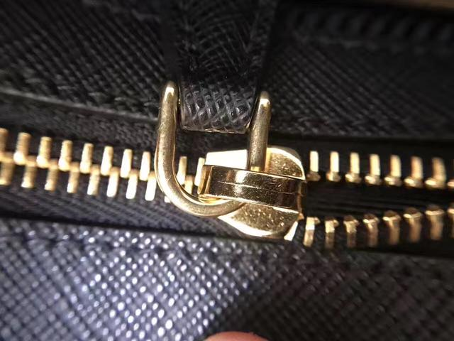 1、由于本身prada品牌存在四套不同五金 亮面 亮面啞光 啞光做舊 還有拉絲。拉絲面最少。所以不同廠出來的五金顏色和字母深淺存在略微差異。不過logo中印章清晰度都是很清晰的。至少可以在某一光線角度下看出清晰logo印章及1913prada誕生年份。印章感覺好似小蠻腰。絕對不會是胖胖那種。而拉鏈則都是Lampo拉鏈。拉鏈底部有l(wèi)ampo刻字。有些男款手包是使用riri拉鏈,底部同樣有riri刻字。并在riri下方有數(shù)字標號。金色logo及拉鏈使用鍍金五金。易磨損掉色,這已是公認!