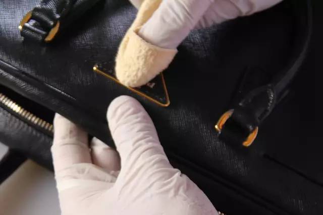 Prada的Logo鍍色比↑上面LV的鍍色要麻煩很多,因為電流夾無法夾住logo,只能用夾子尖部分別去接觸每個字母,進行逐一鍍色。(真的是特別特別挑戰人的耐心,在鍍色的過程中,一姐真的很佩服庫院長。