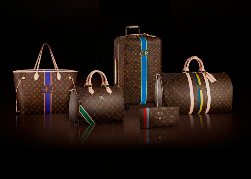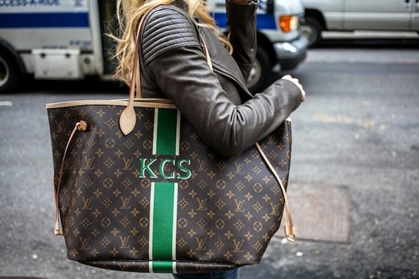 面對市面上大大小小的各種高仿,LV也拿出絕招推出了私人定制系列,顧客們除了可以選擇在包包上印上獨一無二的字母外,還可以用通過Mon Damier Graphite在線服務設計富有個性的彩色條紋以及字母。讓傳統的Neverfull多了不少生趣。