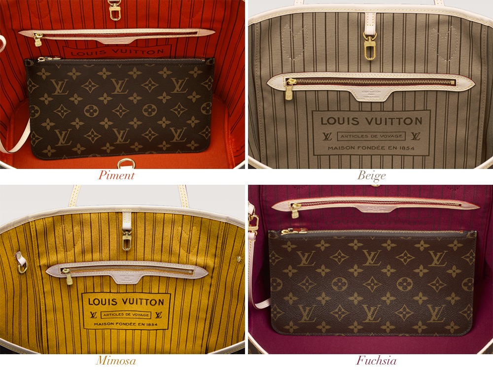 Epi皮革的Neverfull只有兩個型號,小號和中號;每個size對應了不同的顏色選擇。