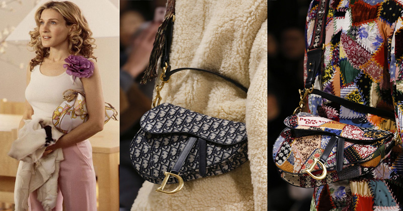 很多人和它的初見應該是在美劇《欲望都市》里,第三季Carrie就背了一只粉白底搭配金色鏈條圖案的馬鞍包,和她一整身look的配色完美呼應,特別時髦。