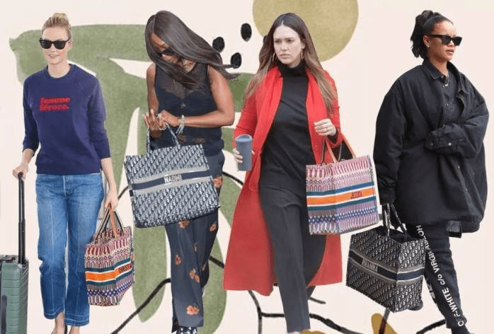之所以說它“貴婦”,不僅因為價格其實不算便宜,更因為這款包的刺繡圖案非常精細,帶著很高級的精致感。一般裝一堆東西的大袋子都怎么簡單怎么來,哪見過還有這么多細節設計的。所以全球的明星、名媛和貴婦們都瘋狂在用。左至右:Karlie Kloss、Naomi Campell、Jessica Alba、Rihanna ↓