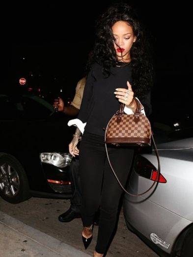 蕾哈娜有一只棕色棋盤格款,很成熟,可能不太適合年輕小姑娘背,略顯老氣。