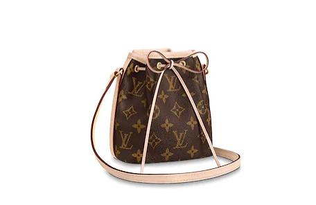 LV迷你水桶包,NANO NOé 手袋。尺寸是:13.0 x 16.0 x 10.0 cm 。可以裝手機,日常化妝品都沒有問題,這款包也是比較火的,特別是小女生很喜歡。采用老花Monogram帆布材質(zhì)。如下圖