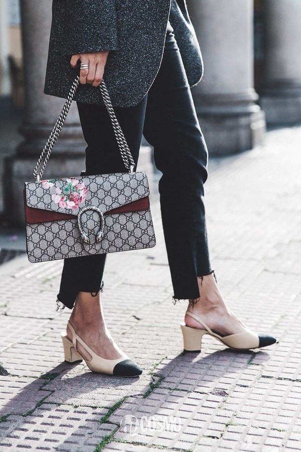普羅大眾對這款酒神包都不會(huì)陌生,同樣也對Alessandro Michele的大名如雷貫耳,畢竟Gucci在他的執(zhí)掌之下時(shí)尚度水漲船高。這款包的英文名DIONYSUS源自古希臘神話中的酒神的名字,以上窄下寬的形狀搭配當(dāng)下最流行的新式鏈條設(shè)計(jì),硬朗且富有層次感。雙G Logo、天馬行空的印花和雙虎頭鎖扣,不僅納入了浪漫的神話故事,也令酒神包更具深意。