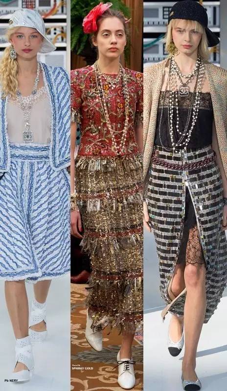 各大秀場上也都紛紛被珍珠元素霸屏,尤其偏愛珍珠飾品的香奶奶家幾乎每場秀都佩戴珍珠飾品,小香風的套裝搭配上一串珍珠,仿佛帶我們穿越回浪漫又風情的黃金年代。