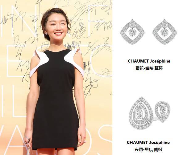 利落短發(fā)和黑白連身短裙造型在CHAUMET Joséphine白金鑲鉆耳環(huán)和戒指的點綴下,有沒有突顯出周冬雨靈動而富有英氣的獨特魅力呢?