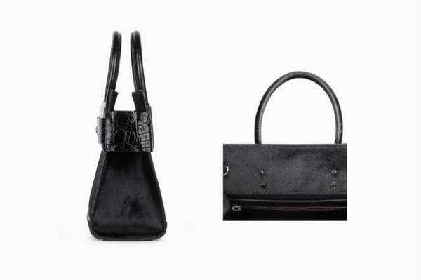 黑色小馬毛拼鱷魚皮壓紋小號Horizon