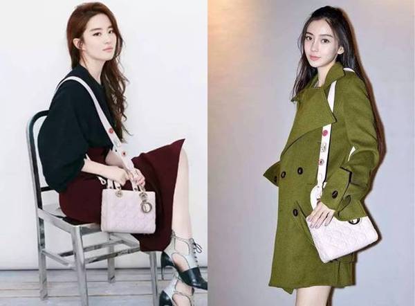 這款浪漫溫柔的粉色款Lady Dior非常適合單肩,能襯托出baby和劉亦菲優雅大氣的氣質。