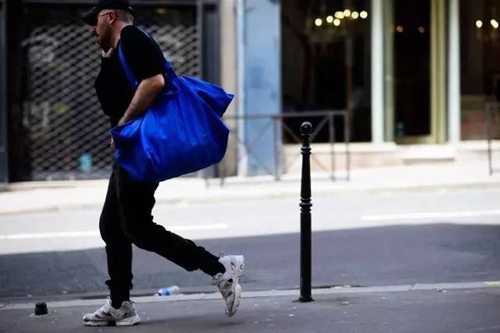 盡管現(xiàn)在農(nóng)民工也嫌棄紅白藍(lán)編織袋了,不過四件套的透明袋子似乎還聳立在現(xiàn)今舞臺,各種大朵的花紋,以及兩根全角拉鏈開合,可謂把空間利用與實用性做了極致,可謂搬家時的得力干將,只是如果把四件套手袋搬到時尚舞臺,上個奢侈品LOGO也是遠(yuǎn)遠(yuǎn)不夠的。