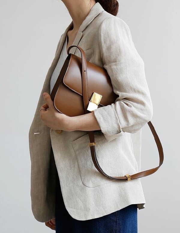 提到CELINE Classic Box,首先想到的是它復古做舊的五金,box無論是老版本的滑紋,還是最新軟木細橫紋,采用的都是小牛皮加工制作而成,皮料天性嬌貴,很容易出現劃痕,所以Celine box在五金的選擇上采用黃銅,一是為了跟容易產生劃痕的box皮相得益彰很好地融合,二是為了讓Classic box可以更好地體現出歲月感,越用越復古,也體現法國女性從少女到熟女每個階段都有不同的韻味與內涵。好的的手袋往往都在講述關于女性美好的故事,不是嗎?