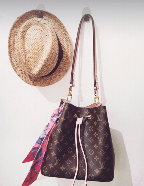 越看越喜歡,Monogram帆布NeoNoe LV水桶包就是這么討喜,也可以像愛馬仕那樣扎條彩色絲巾,充滿度假風情。