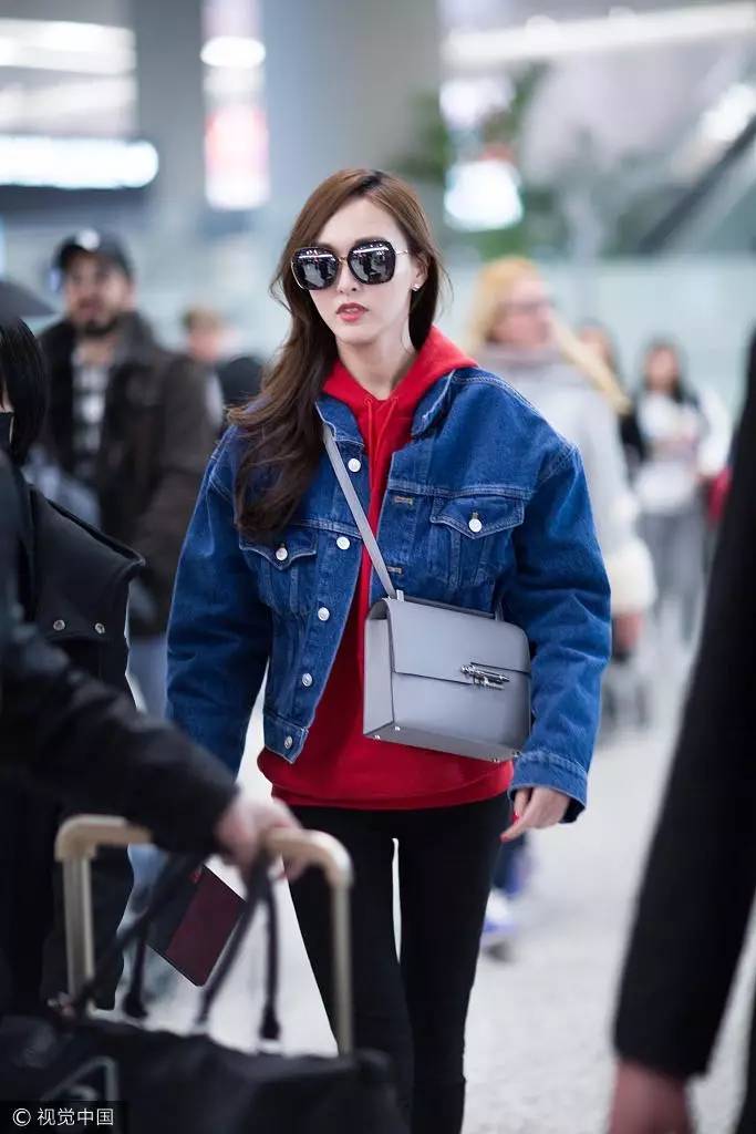 楊冪至少有3只這款包,黑色的中、小號各一只,還有一只紅色中號的~~