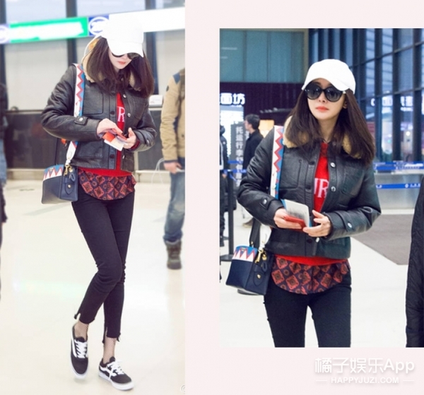 表姐劉雯選擇了黑色的包款,搭配基本款帽衫和黑色皮靴又美又酷!