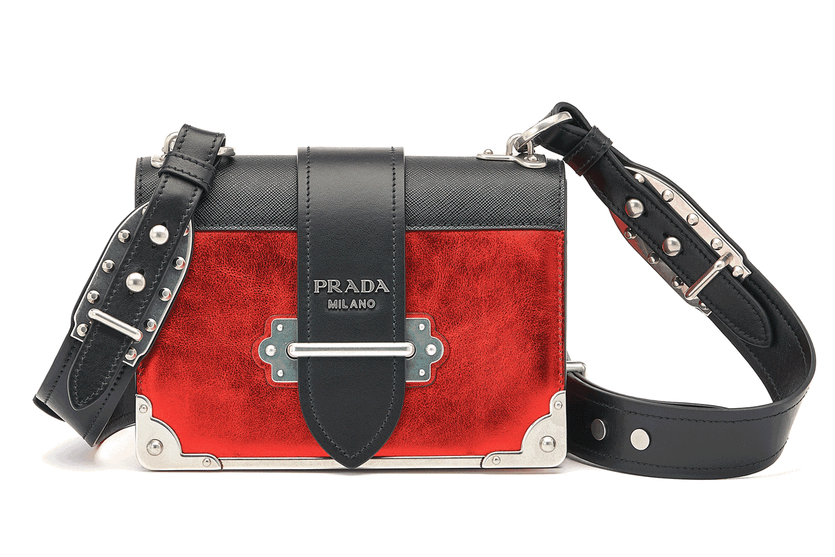 三種不同款式和材質的Prada Etiquette包袋演繹各自的紅色風情。
