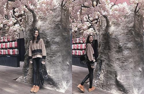 這么好看的包包怎能少了wuli大表姐呢,其實她早早就用上了,站在諾大的櫻花樹下,或拎或挎著Faye雙肩包,綻放著標志性的笑顏