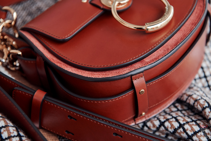 Chloe Drew跟Chloe Tess都是馬鞍包造型,Tess有兩條肩帶,粗的可肩背,細的可手提,小尺寸包包容量比Drew大好裝,且有雙層的設計,更好用,這就是為什么我沒有選擇Drew小豬包,而選擇Tess包,簡約卻很有型耐裝,日常生活超實背!