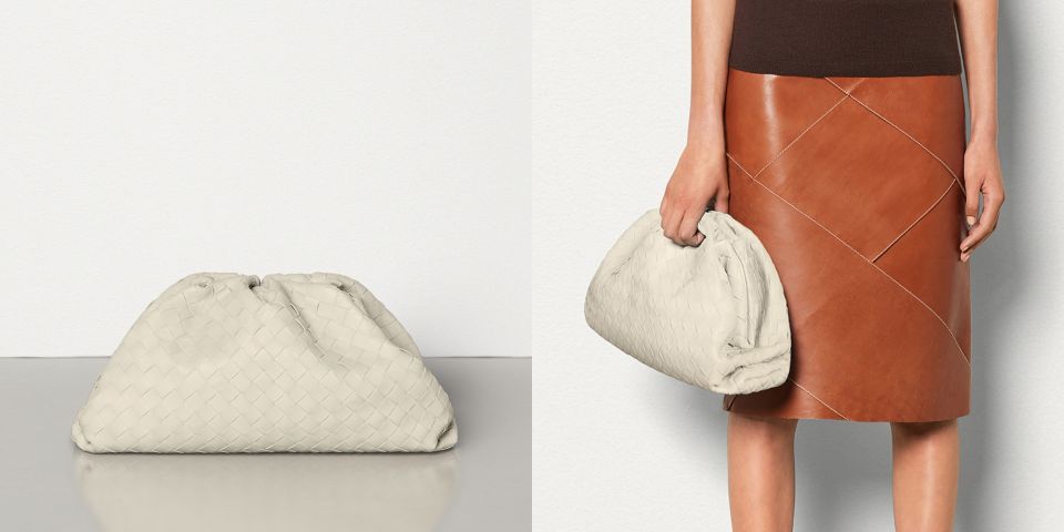 The Pouch自推出后,成為Bottega Veneta賣到斷貨的人氣王,以結構式框架包裹著柔軟壓褶的皮革,營造出豐盈且圓弧的形狀,搭配上Bottega Veneta最為人知的編織皮革,不論手拿還是抱著都合適。