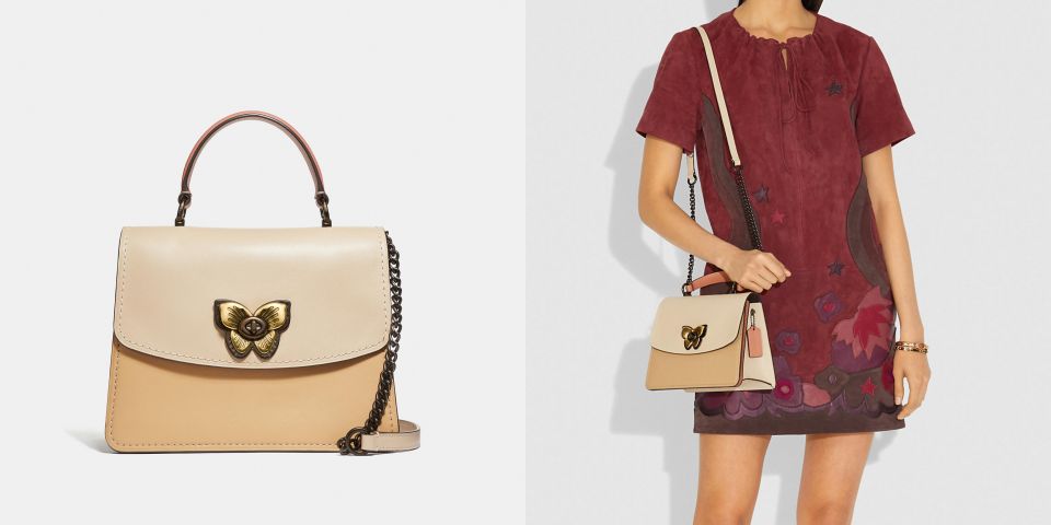PARKER 手袋實用百搭,結合都會優雅與街頭隨興,而且結構挺立、重量極輕。此手袋以精致皮革制成,是PARKER 系列新款單品,具有柔美、浪漫的頂部提把和優雅新外型。此單品采用具有蝴蝶裝飾的轉扣閉合設計,靈感來自對大自然與自由奔放的熱情。不管是手持還是斜背,造型都同樣搶眼。