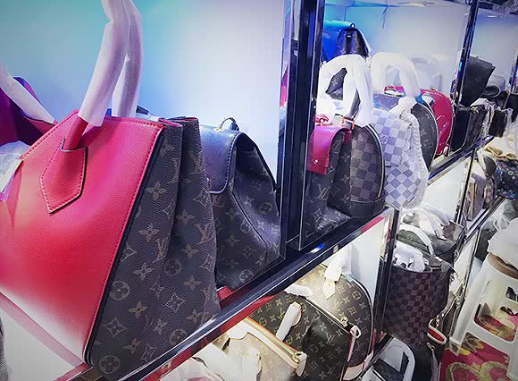 店內擺著各式仿冒的奢飾品包,最仿真的版本放在VIP室里。