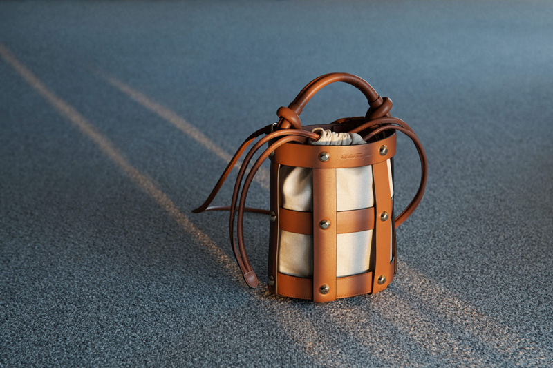 Salvatore Ferrgamo以輕巧的建筑感結(jié)構(gòu)改造水桶包型,并且在經(jīng)典的單色皮革款式之外,推出與法國藝術(shù)家Julien Colombier合作的罌粟印花絲綢內(nèi)袋,致敬品牌另一標(biāo)志性單品——絲巾,也為Cage鳥籠包背后的創(chuàng)意故事再添深度。