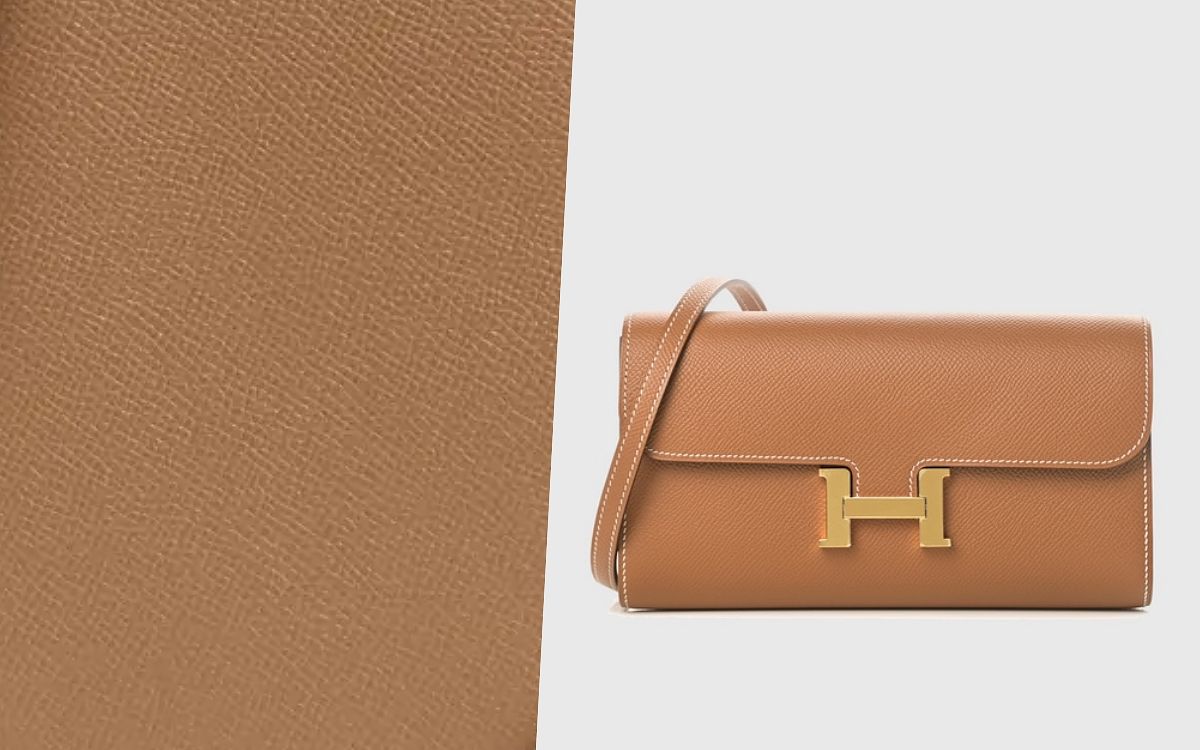 愛馬仕最普及的經典小牛皮革,擁有品牌獨有的人工壓紋技術,皮革具塑膠感、質感硬挺且防水、防刮且耐磨,但大力刮出傷痕會無法恢復,同時整體重量較Togo更加輕盈,制成包款后結構扎實,包型輪廓不易松垮好整理,因此也是入門愛馬仕包款或皮件的極佳選擇。