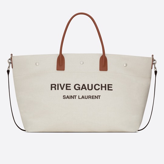 大號托特包洗練而寬敞,采用柔軟堅韌的小牛皮為背景,「Rive Gauche」字母凸紋宛如精致立體的浮雕裝飾。推出黑色、蜜棕色和塵灰色3個配色。