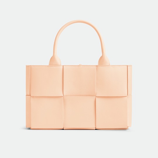 Arco 迷你托特包采用3x2的大方格,取材柔軟小羊皮編織而成,配有雙手柄、可拆卸背帶和內(nèi)置拉鏈袋設(shè)計(jì)。