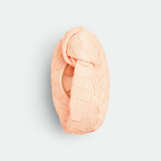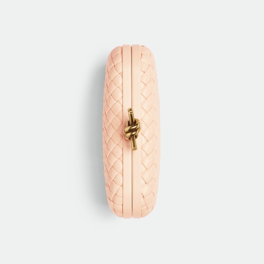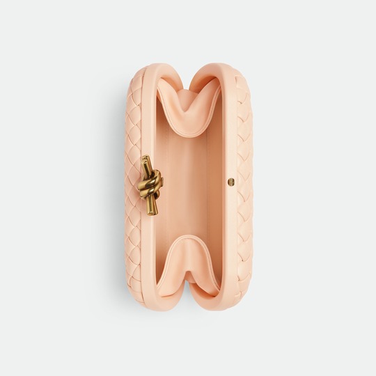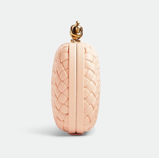 Knot 晚裝包依然在盒型輪廓上包裹柔軟 Intrecciato 小羊皮,頂部金色金屬繩結(jié)雕塑成為亮點(diǎn)。